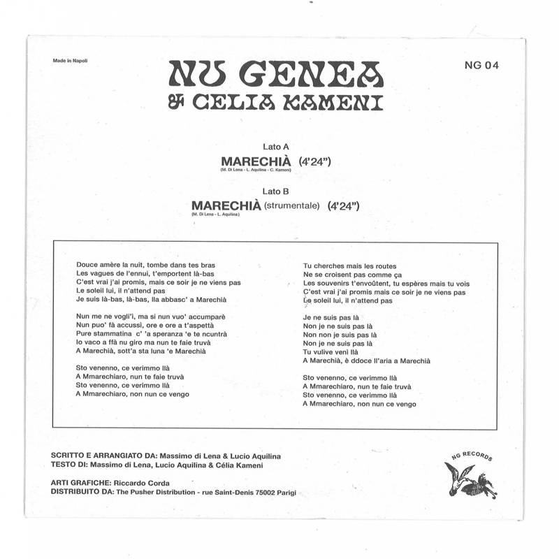Nu Genea comes back on their own imprint NG records with their brand new single Marechià, featuring the beautiful voice of French singer Célia Kameni. The outcome is a disco funk song where the Neapolitan language blends in with the French in a perfect balance of synths and guitars, baked in their distinctive signature sound. The song pays tribute to the wonderful Marechiaro, a seaside village in the gulf of Napoli. This is the world of Nu Genea that mixes and incorporates different sounds, cultures, and languages that's aiming to create something new and original.