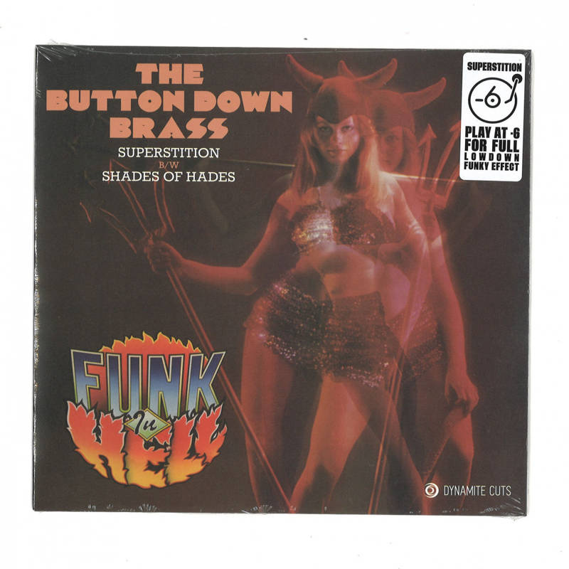 When deciding on tracks to release on '45' for the first time, the Dynamite Cuts team seems to mine a mixture of sought-after sets, familiar favourites and overlooked obscurities. This single falls int the latter category, featuring as it does two killer cuts from Funk In Hell, a 1976 album by library music collective-turned-instrumental funk outfit Button Down Brass (a band founded by trumpeter and arranger Ray Davies). A-side 'Superstition' is simply superb: a down-low cover of Stevie Wonder classic 'Superstition' that sits somewhere between down-low library funk and Blaxploitation movie soundtracks, with a dash of big band funk thrown in. Instrumental flipside 'Shades of Hades' is equally as vibrant, with elongated electric guitar notes, heady hand percussion and spacey synth sounds combining superbly with spy-funk horns and weighty bass.As played by DJ Muro from Japan.