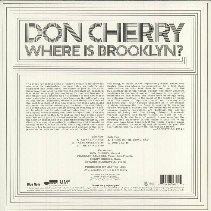 Cornetist Don Cherry first rose to prominence as part of the revolutionary Ornette Coleman Quartet that turned the jazz world on its ear in 1959 when it arrived at the Five Spot Café in NYC. Though Cherry co-led the album The Avant-Garde with John Coltrane in 1961, it wasn’t until he signed with Blue Note in 1965 that he began his career as a leader with a run of fiery albums including Complete Communion, Symphony for Improvisers, and 1966’s Where Is Brooklyn? This last session was a highly interactive quartet date that featured Pharoah Sanders on tenor saxophone and piccolo, Henry Grimes on bass, and Ed Blackwell on drums. This Blue Note Classic Vinyl Edition is all-analog, mastered by Kevin Gray from the original master tapes, and pressed on 180g vinyl at Optimal. from Coleman's playful lyricism.