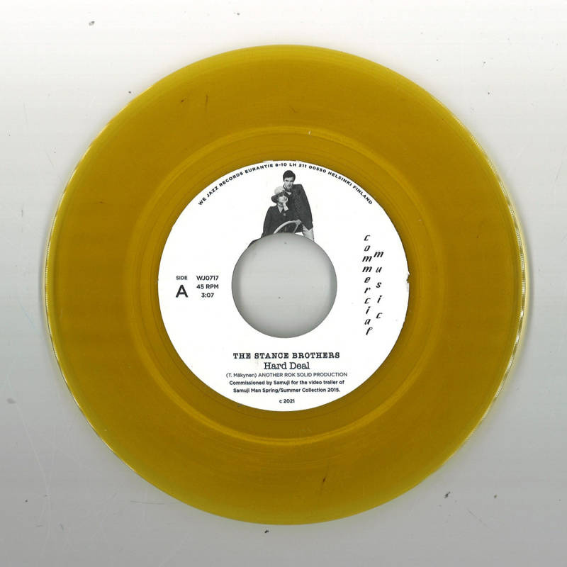 Drummer/producer Teppo "Teddy Rok" Mäkynen shares two unreleased cuts by his alias The Stance Brothers on We Jazz Records. The 7" color vinyl single goes by the title "Commercial Music", as both tracks are originally commissioned for promotional purposess. The tough-as-nails A-sider "Hard Deal" is an old-school Stance groover made for the Finnish clothing brand Samuji's men's Spring/Summer collection 2015. Stance fans will recognice the signature Teddy Rok groove which cooks and rocks, and displays nice depth as well. The drum break is pure fire like only Teppo can deliver. "Dwayne's Shuffle", known to local Finnish jazz aficionadoes as the opening theme of the popular Yle Radio 1 "Jazzklubi" show is slightly more mellow offering, yet the full swing and intensity is right there in the pocket. The crunchy guitar and minimalist vibraphone melodies carry the tune way beyond your average radio show jingle into a full existence of its own.