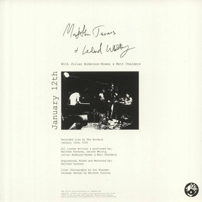 The same quartet feature on Matthew Tavares & Leland Whitty's 2020 album 'Visions'. The plan to promote 'Visions' was to tour, with each night comprising a uniquely improvised set. Sadly due to world events, this couldn't happen, but for now 'January 12th' is a snapshot of the wizardry that would have been from four amazing musicians at the top of their game.