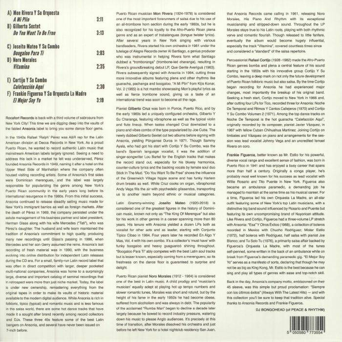 On the latest volume in their ongoing Latin Underground Revolution series, Rocafort Records has dipped into the vast archives of Ansonia Records, the NYC-based Latin American division of Decca Records. With six tracks stretched across three seven-inch singles, there's much to enjoy, from the organ-laced Latin soul shuffle of Gilberto Sextet's 'Do You Want To Be Free' and the punchy mambo madness of Mon Rivera Y Su Orquestra's 'A Mi Piln', to the scintillating salsa of Cartiho Y Su Combo's 'Calefaccion Aqui' and the horn-heavy dancefloor strut of Joseito Mateo Y Su Combo's 'Boogaloo Para T'. Throw in some superb, authoritative liner notes and you have another brilliant package from the on-point Rocafort Records crew.