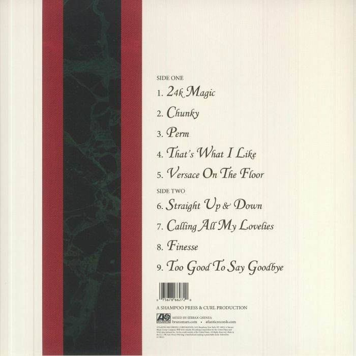 24K Magic to trzeci studyjny album amerykańskiego piosenkarza-songwritera Bruno Marsa, wydany w 2016 roku przez Atlantic Records. Multiplatynowy album zdobył 7 nagród Grammy dzięki przebojom "That's What I Like", "24K Magic" i "Finesse", a teraz będzie po raz pierwszy dostępny na złotym winylu.