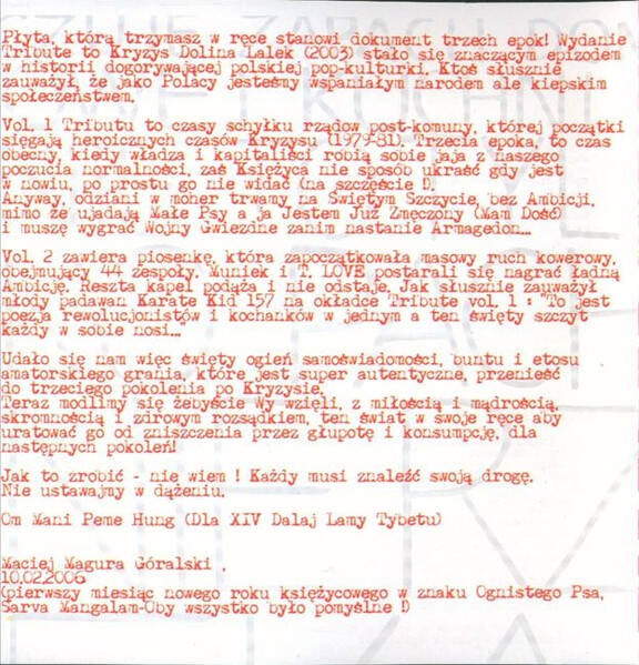 Po długim oczekiwaniu pojawiła się druga, jeszcze lepsza część składanki poświęconej zespołowi Kryzys. Kolejne 21 piosenek w różnych stylach muzycznych od punk rocka i reggae poprzez rock i rockabilly do nowych brzmień… Płytę ozdabia okładka namalowana przez najdroższego wspólczesnego polskiego malarza – Wilhelma Sasnala.