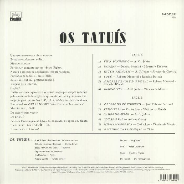 First time vinyl reissue of Jose Roberto Bertrami's 1965 ‘Os Tatuís’ via Far Out Recordings. Best known as the keyboardist and bandleader of legendary trio Azymuth, the late José Roberto Bertrami also wrote for, arranged for and performed with Elis Regina, George Duke, Sarah Vaughn, Jorge Ben, Eddie Palmieri, Milton Nascimento, Flora Purim and Erasmo Carlos, among countless others.