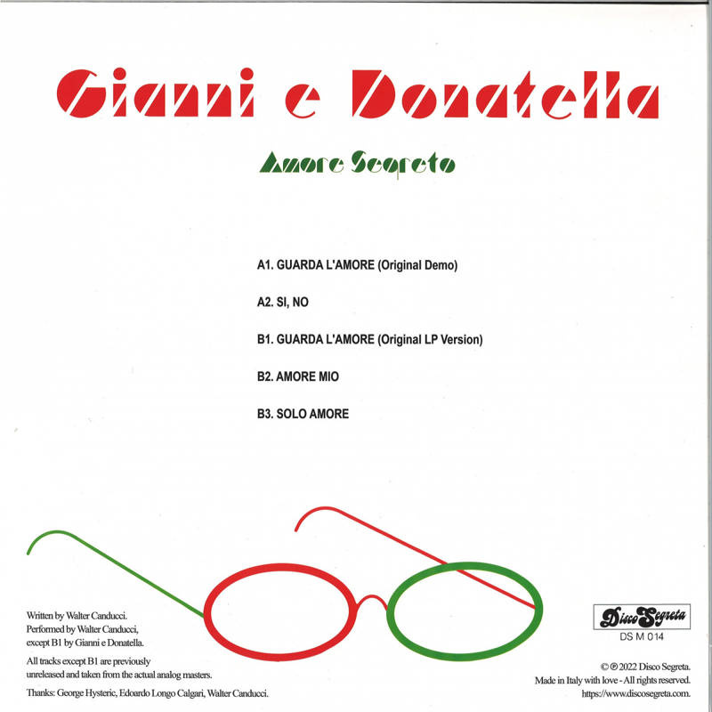Disco Segreta reveals another music mystery ! This EP – taking 4 years in the making – marks the first ever 12” release of the elusive downtempo italo-boogie tune “Guarda l’Amore”, sung by the mysterious italian duo Gianni & Donatella, only previously available on the impossibly rare 1987 “Disco Italia” compilation LP, released on the tiny italian “Disco In” label. Our archives diggin’ job proved to be incredibly fruitful, to the point that we’ve unearthed four *previously unreleased* demo tracks sung by tracks author Walter Canducci along with Gianni, supposed to be part of an LP release that ultimately never saw the light of the day….until now, and guess what – they’re jaw-dropping! Starting with the slap-bass funk bomb “Si, No”, then going into the late-night love maker “Amore Mio”, topping it all with the mellow beach vibes-infused “Come Allora”. On top of that, you’ll also get an alternate “Guarda l’Amore” demo version. We will never know how these lo-fi demos would sound if the original project of Gianni & Donatella singing on all tracks succeeded, but the only existing recorded evidence can sure give a feel of this unique italo-boogie studio project, that has a space in the most respected DJ bags only. As usual with our extreme quality standards, reissue is from actual analog multitrack and stereo masters!