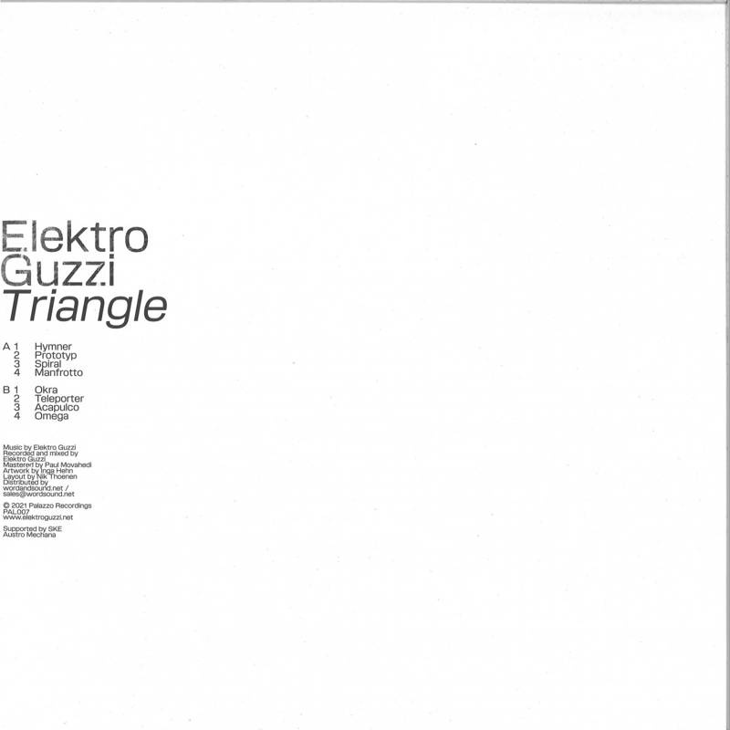 Elektro Guzzi from Vienna are back with their new, their ninth album »Triangle«. Since their first, self-titled album in 2010, Elektro Guzzi have been working on a variety of techno that is not programmed on a computer or sequencer, but rather analogously performed by using electric bass (Jakob Schneidewind), drums (Bernhard Breuer) and electric guitar (Bernhard Hammer) and it is techno-music, that arises in the moment of interaction - a music that often develops in the direction of cosmic music. On »Triangle«, Elektro Guzzi overcame the natural, »learned« sound of their instruments. The futuristic concept of techno shines through all the more as a role model - that there is precisely this clear idea of transcending the present by playing a hypnotic, interlocking music of the future. »Triangle« is the logical next step for a band that is always looking for »more«, for departure, for consistency. The forced break of the lockdowns 2020/2021 and the restrictions in the context of the crisis made the band move closer together; on »Triangle«, Elektro Guzzi increased their efficiency to the unbelievable.