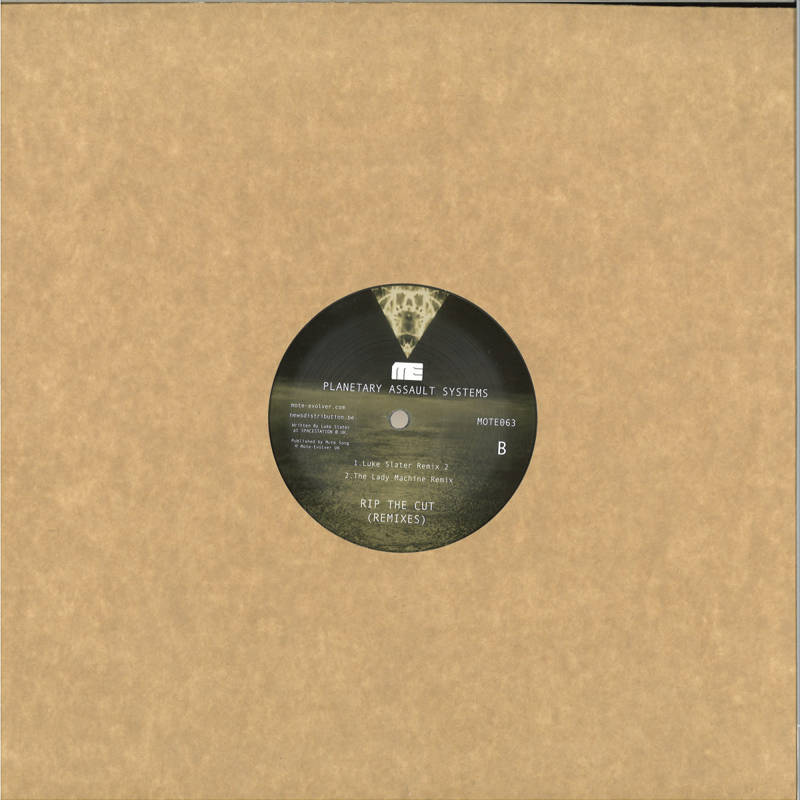 11 years after it first featured on Luke Slater's fifth album as Planetary Assault Systems, 'Rip The Cut' has been given the remix treatment. Slater provides two reworks of his own: the deliciously creepy, distorted and subtly intergalactic 'Remix 1'- all locked-in techno grooves, echoing bleeps and trippy vocal samples - and the brilliant breathless 'Remix 2', whose epic percussive breakdown and build could create pandemonium on the dancefloor. Elsewhere, sometime Deep Dish man Dubfire adds locked-in melodic loops to Slater's beefy beats, while the Lady Machine revision is a weighty slab of gnarled industrial techno.