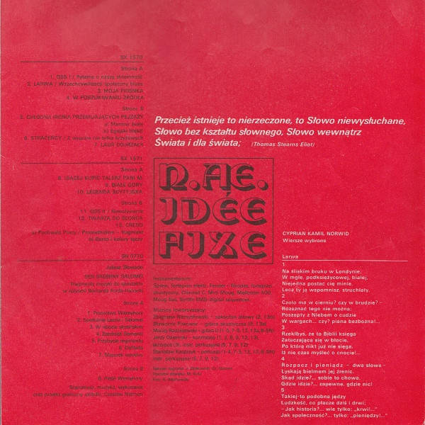 Drums – Stanisław Kasprzyk (tracks: A1 to A4, B3 to C2, D2, D3, F)