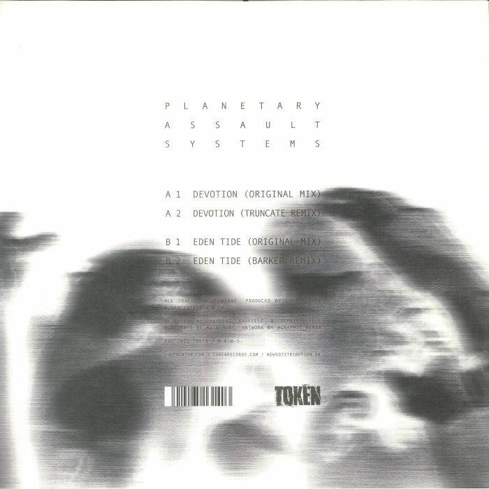(Truncate & Barker remixes) Hot on the heels of his full-length LP 'Sky Scraping', Luke Slater is back as Planetary Assault Systems with one of the albums key tracks 'Devotion', which wasn't included on the 2LP. Truncate steps in for a hard hitting remix on A2, while Slater provides a new exclusive hypnotic track 'Eden Tide' as B1. Barker then closes out the record with a meditative eye closer to smooth the edges of a rougher record.