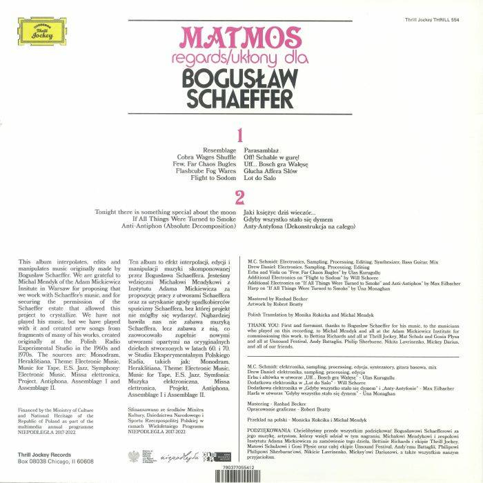 ‘Regards/Ukłony dla Bogusław Schaeffer’, however, was not just inspired by his work. Matmos were given access to the entirety of Schaeffer’s recorded works to use as they saw fit, commissioned by the prestigious Instytutu Adama Mickiewicza. They re-assembled and re-combined these recorded works with modern instrumentations in a way that only Matmos could, and what emerged is a composite portrait of the utopian 1960s Polish avant-garde and the contemporary dystopian cultural moment regarding each other across a distance.