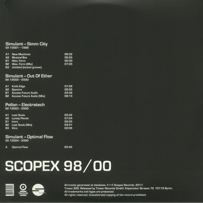 On the occasion of the 300th release on Tresor Records and the 20th anniversary of the mysterious Scopex imprint, we are glad to present you the long awaited re-edition of the three essential Scopex records, along with a previously unreleased track, recorded during these essential sessions. Gatefold Sleeve Vinyl Only.