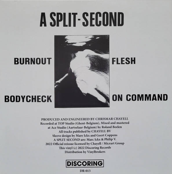 A Split-Second's cult coldwave EP Flesh was dropped back in 1986 on Antler Records. The band of Marc Heyndrickx, and Peter Bonne (aka Chrismar Chayell) only formed a year earlier but his debut single made a huge impact and has become a real classic of the EBM and wave world ever since. Numerous albums followed well into the 90s but rarely did the pair ever top this - the jerking rhythms, ravey electronics and retro-future chords all resonating as much with audiences now as they did back then.