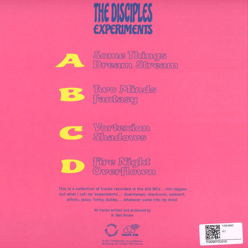 A beautifully produced collection of instrumental tracks by The Disciples' Russ Bell-Brown featuring 8 excursions in chill out, atmospheric downtempo and dubby breakbeat. Surely we wouldn't be surprised to hear some of these at a Cafe del Mar sunset session in Ibiza. The way these tracks build up over a gradient (sometimes up to 11 minutes long) from silence to mellowed out spacial trance was clearly not done with industry standards of any sort in mind, allowing the listener to dive deep into the takes of this uncompromising producer. The title Experiments couldn't be more appropriate. In his own words: “This is a collection of tracks recorded in the mid 90`s... not reggae but what i call my `experiments`... downtempo, electronic, ambient, ethnic, jazzy, funky, dubby.... whatever came into my mind.” Surgically re-mastered for vinyl by manmade mastering in Berlin.
