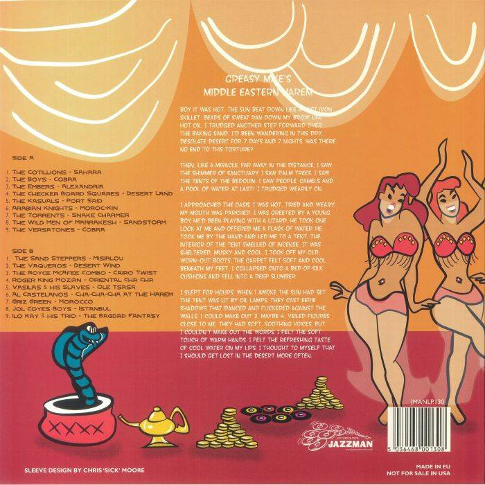 In this adventure Greasy Mike finds himself lost in the wilderness; hot, thirsty and alone under the unforgiving desert sun. He's been days without food and water; the heat of the day stifling almost beyond endurance, the cold of night a trial of torment. Survival seems impossible - or does it? Staggering across the sandy plains, the eerie yet unmistakable sound of a snake charmer's reed curiously winds its way into his ears. Instinctively he turns his head towards the sound - and lo! An oasis just ahead! Music, laughter - and belly dancers!!!