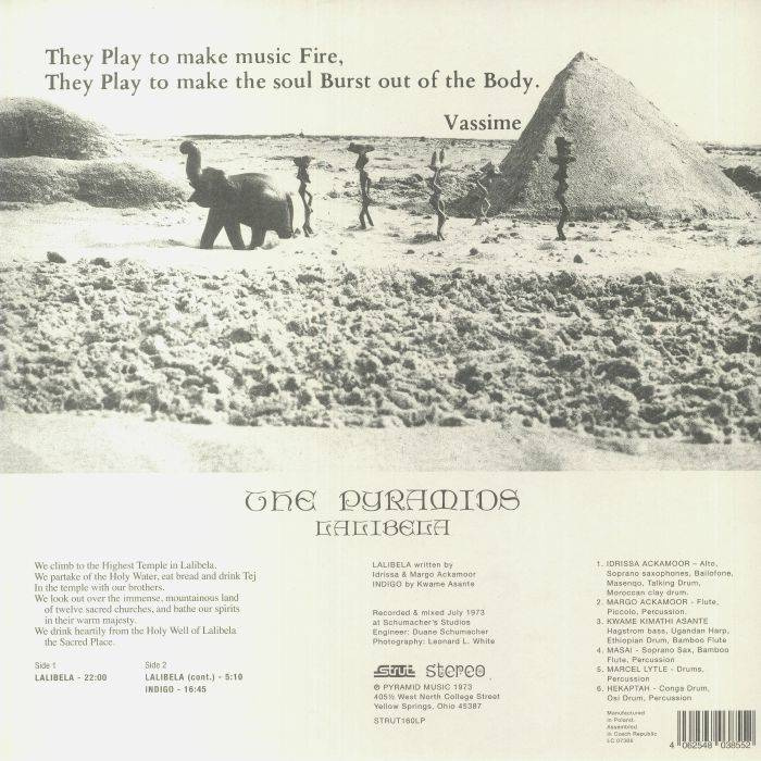 Strut prezentuje 3 osobne reedycje trylogii Idrisa Ackamoora & The Pyramids. Jako studenci Antioch College w Ohio Idris Ackamoor (saksofon altowy), Margaux Simmons (flet) i Kimathi Asante (bas) stworzyli w latach 1972-1976 trzy trwałe muzyczne pomniki - "Lalibela", "King Of Kings", i "Birth / Speed / Merging", wszystkie wyprodukowane bez wsparcia wytwórni i bez dystrybucji.