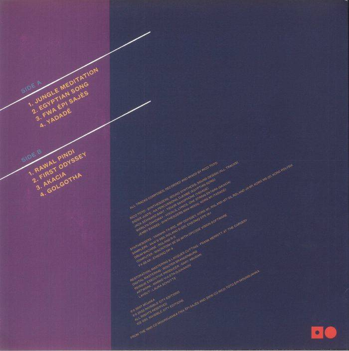 Invisible City Editions continues our 10 year anniversary in adventurous sounds. We are thrilled to announce the re-release of Rico Toto’s 1993 CD recording Fwa Épi Sajès. Mind melting synthesizers and drum machines fuse with ancient Guadeloupe Gwo-ka rhythms in this musical endeavour Rico Toto describes as “Electro-ka.” The improvised live instruments of the Moundjahka ensemble meld with electronic abstraction to create a psychedelic, immersive digital diaspora dream state. With nods to Jon Hassell’s’ atmospheric soundscapes, YMO and Baldelli / TBC Cosmic mixtapes, this selection of songs encompasses an entire spectrum of moods and sounds. The A side begins with fourth-world tropical percussions, opening with sounds of nature in “Jungle Meditation” and leading into the downtempo summer synthpop jam “Yadadé.” The B side takes a darker turn, starting off with the deep chugging rhythms of “Rawal Pindi” and continuing even deeper with synth sounds and haunting vocals that culminates into the dreamy meditative final track, “Golgotha.”
