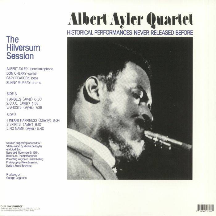 Soon after that session, Ayler took his trio to Europe where they were joined by cornetist Don Cherry for a tour of The Netherlands, Sweden, and Denmark. The Hilversum Session is a live radio session recorded on November 9th, 1964. At that point the quartet was months into its European tour and the interplay is extraordinary. On classic Ayler compositions like “Spirits” and “Ghosts” the band absolutely rip, with a kind of intuition and connectivity rarely heard, creating some of the most untethered and undeniably powerful music in the history of free jazz.