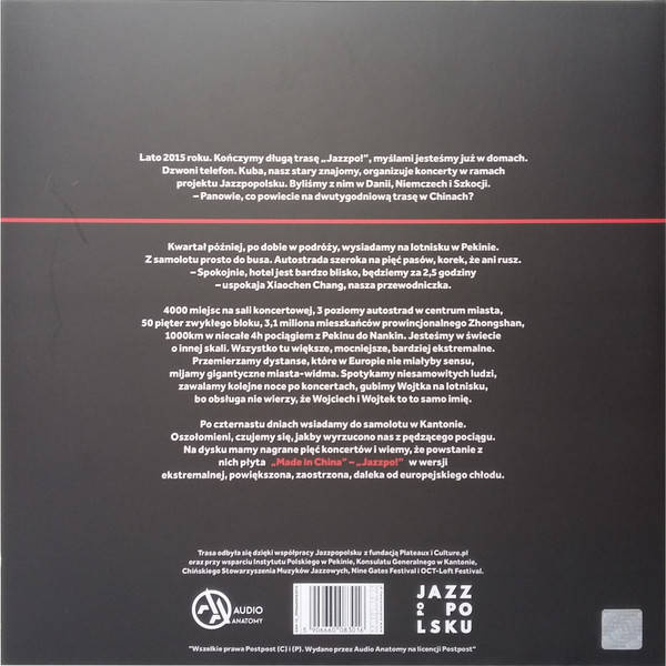 Trasa koncertowa „Jazzpo!” trwała ponad rok i była dużym sukcesem. Grupa wystąpiła ponad 50 razy w Europie, a tournee zakończył dwutygodniowy wyjazd do Chin, gdzie Jazzpospolita zagrała, między innymi, na uznanych festiwalach Beijing Nine Gates i Shenzen Oct Loft. Jesienią 2016 roku ukazała się pierwsza koncertowa płyta grupy – „Jazzpo! Live Made in China” dokumentująca azjatycką trasę. Podwójny album zawiera głównie kompozycje z albumu „Jazzpo!”, jest bardziej dynamiczny i głośniejszy niż studyjna wersja.