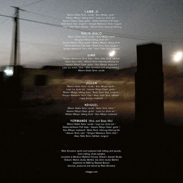 From their Jeri Jeri roots, Hard Wax maverick Ernestus's Senegalese drum ensemble work elevated to Ndagga Rhythm Force in early 2015. Sprinkling our collections with beautiful cosmic dub tech ever since, the troupe bring the 12"s together for a full album adventure. From the instantly distinctive percussive layers and thin glimmers of highlife guitars on "Lamb Ji" to the intense rolling drums and yearning vocals of "Jigeen", climaxing with the hi-hat-snapping "Yermande", the detail, soul and richness of this project is near matchless.
