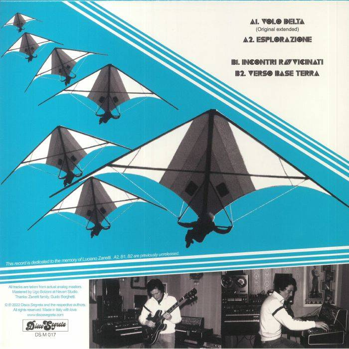 The only recorded evidences ever published by Zanetti are incidentally just two disco-related 45s. The one presented here, “Volo Delta”, was a synth driven space disco track released in 1976 on Zanetti’s own private label Rot, before such niche subgenre found its way into disco productions.