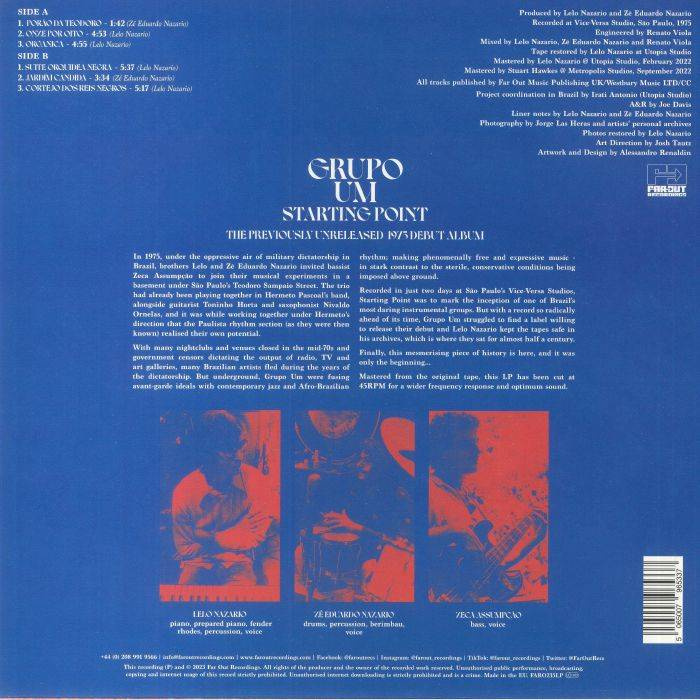 Starting Point was to mark the inception of one of Brazil’s most daring instrumental groups. Their debut now sits in the lofty echelon of otherworldly 70s Brazilian music, alongside the likes of Marcos Resende & Index’s self-titled debut, Cesar Mariano & Cia’s Sao Paulo Brasil, Azymuth’s debut and indeed Hermeto Pascoal’s Viajando Com O Som. But just like all of those titles, which were either shelved or largely ignored at the time, Grupo Um - so radically ahead of their time - struggled to find a label to release their debut album. So Lelo kept the tapes safe in his archives, which is where they sat for almost half a century. Finally, almost fifty years later, this mesmerising piece of history is here, and it was only the beginning...