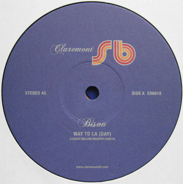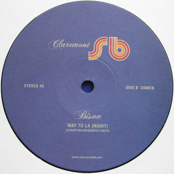 Claremont 56 start 2010 with a single from their latest signing, Bison, made up of Holger Czukay, Ursa Major, Paul Mudd Murphy and Benjamin Smith. The first release takes you on a trippy rock fuelled journey to the west coast of America, via Stuttgart and Holloway. On the A side, ‘Way to LA’s’ bass throbs insistently, engines growl and bubble and Tom Petty power chords flash by in a swirl of Czukay reverb, fading like treacle. Ursa Major is at the wheel, her voice soothing. Side B takes to the highway with a darker sound.