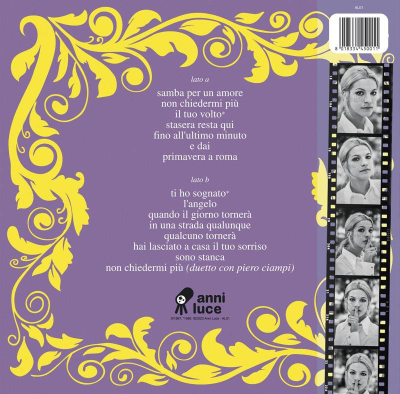 Arranged and orchestrated by Maestro Elvio Monti, and embellished by the participation of Alessandro Alessandroni's I Cantori Moderni, the record is a perfect child of the Sixties, featuring beat tunes and “yè-yès”, Italian canzone, intense ballads, Brigitte Fontaine-like atmospheres and a rediscovered duet of Lucia with her friend Piero, Non chiedermi più, whose recording was known among insiders at the time but sadly appeared to be lost forever. Ciampi's voice lives again in a song that has remained unreleased for more than 50 years within this new expanded version of Lucia Rango Show, thanks to the long research of journalist Lucilla Chiodi (Musica Jazz). Needless to say, the album is an enormously valuable historical document for all fans of Ciampi's output and Italian music in general: along with classics such as Fino all'ultimo minuto, Quando il giorno tornerà and Hai lasciato a casa il tuo sorriso – all originally included in Ciampi's first LP released under the alias Piero Litaliano in 1963 – Lucia Rango's voice consigns to history as many as six songs conceived and written specifically for her recording debut by Ciampi along with Elvio Monti. To date, Rango's invaluable interpretations are the only versions ever recorded of Samba per un amore, Il tuo volto, Stasera resta qui, Primavera a Roma, Ti ho sognato and Sono stanca.