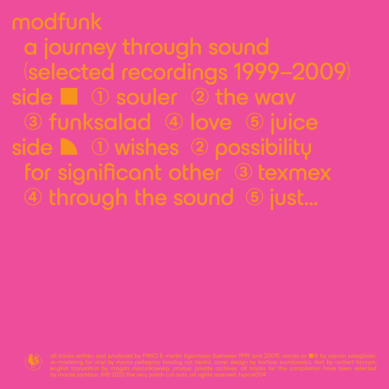 The Very Polish Cut-Outs have once again sought out forgotten and somewhat obscure artists whose music is in need of a revival. This time, they have chosen the duo MODFUNK, who were active in the Polish electronic music scene from 1999 to 2009. Piotr Jarecki and Martin Tigermann, two Varsovians who shared a love for the "french touch" genre that dominated dancefloors worldwide at the time, showcasing Daft Punk, Cassius, Stardust, and Bob Sinclar, were the brains behind the project.