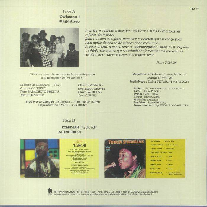 The B side is a Dj friendly Edit of the dance floor burner «! Zemidjan «! recorded in 1991 . A composition done to pay tribute to the Taxi moto of Cotonou .The last track «!Mi Tchinker!» is a typical Stanislas Tohon hit with a mix of Tchink Rhythm , Soul and funky melodies .