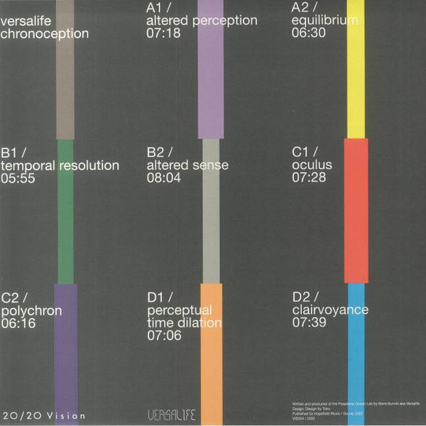 Following the epic dystopian LP 'Manifold' Versalife returns with his second album on 20/20 Vision 'Chronoception'. The accomplished Dutch producer Boris Bunnik aka Conforce delves deep into the cosmic abyss with 8 auditory adventures laced with shadowy tones, deep base and robotic funk.