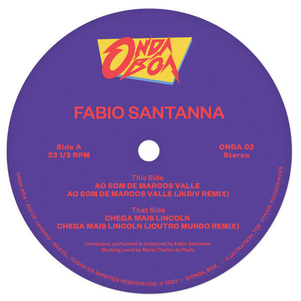 Beloved Rio de Janeiro veteran producer and live act, Fabio Santanna, brings his heady take on the tropical flavors of modern Brazil on Onda Boa’s second release, a pulsating double-sider that serves as a loving tribute to two giants of Brazilian boogie, Marcos Valle and Lincoln Olivetti. “Ao Som De Marcos Valle" kicks things off with a mix of organic elements layered alongside synths and Rhodes that Master Marcos himself would approve of, with lyrics that slyly reference some of Valle’s most iconic moments from his 80s boogie period. Razor N Tape’s Jkriv turns up the heat even further on his remix, bringing a touch of that NYC fire to the already sultry beaches of Rio. “Chega Mais Lincoln” on the flip applies the lessons learned from “O Mago do Pop”, Lincoln Olivetti, utilizing sophisticated synth arrangements over a delicious mid-tempo groove and a vocoder calling out in praise… "Lincoln!”. Joutro Mundo’s remix takes things into dubbyer territory with his trademark approach to dance music that carefully balances tropical bliss with swirling, synth-thetic psychedelia, capping off an epic sophomore 12” for the label that manages to occupy the spaces in-between cosmic disco, tropical balearica and modern boogie… and always with that unmistakable Brazilian swing.