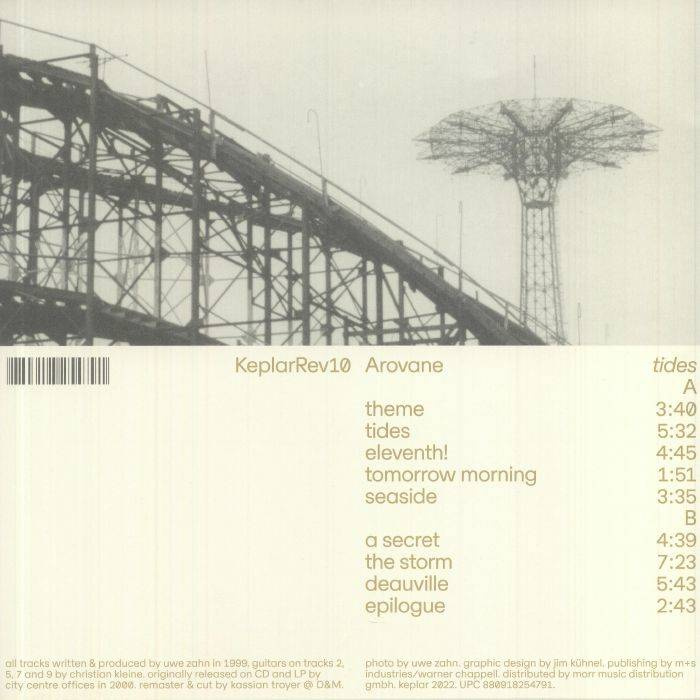 »Tides« marked a radical change in direction for Arovane. After Uwe Zahn had made a name for himself with cutting-edge IDM rhythms and slick ambient textures on a slew of releases, his sophomore album saw the prolific producer opt for a sample-based approach that resulted in a more organic sound and laid-back downbeat grooves. Having reissued Arovane’s seminal »Atol-Scrap« as a double LP in 2021, the Berlin-based Keplar label now makes »Tides« available on vinyl for the first time since its original release in 2000 through the legendary City Centre Offices. The new version has been remastered by Kassian Troyer at Dubplates & Mastering and comes with a brand new cover artwork. It shines a new light on a release for which Zahn quite literally ventured into previously unknown territory — »Tides« is an album that emits a timeless, quiet calm and nonetheless stays constantly in motion.