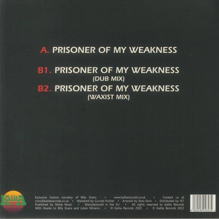 Originally privately released in a small run on Billy’s own label Tee Records, Kalita’s 12” reissue single features both the vocal and incredible dub mix versions of ‘Prisoner Of My Weakness’, plus a brand-new phenomenal remix courtesy of Waxist, produced using the original multitrack analogue master tapes.