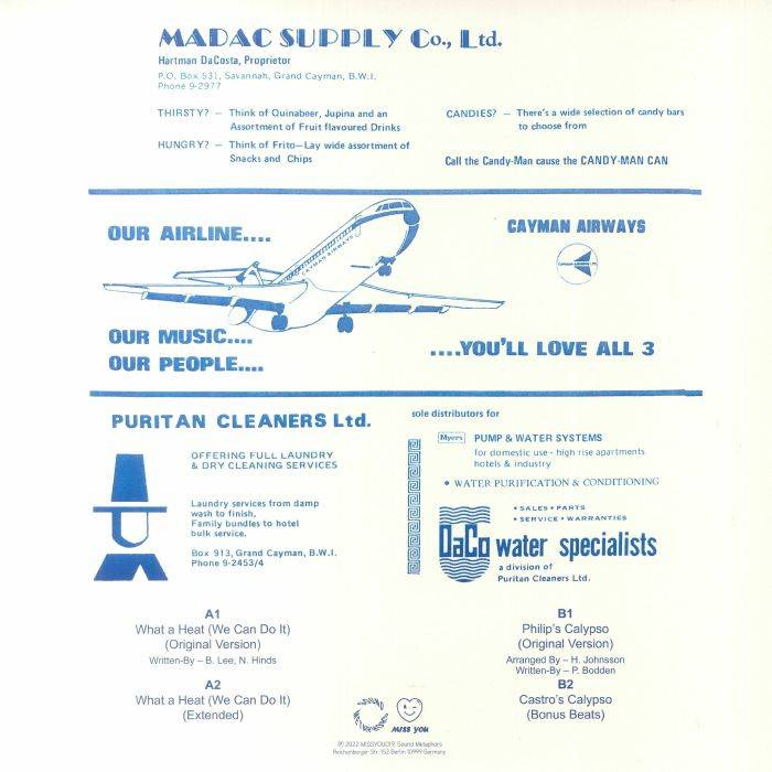 Produced by George Nowak, a German musician who ended up in the Cayman Island in 1971, aka the Barefoot man. “What a heat” is a dreamy slow paced disco cruise (with obvious reggae influences) highly suggestive of the beautiful nuances that might be part of West Caribbean island life. With the opportunity of more playtime allowed on the 12” format, an attempt at further prolonging this dreamy feeling is made with an extended edit. On the B-side, a Calypso bonus beats style edit by Castro takes a few bars of the original B-side “Phyllip's Calypso” and turns it into a tripped out dubby dacefloor DJ tool. Original artwork with commercial advertisements on the backside. Faithfully restored and remastered for your listening pleasure.
