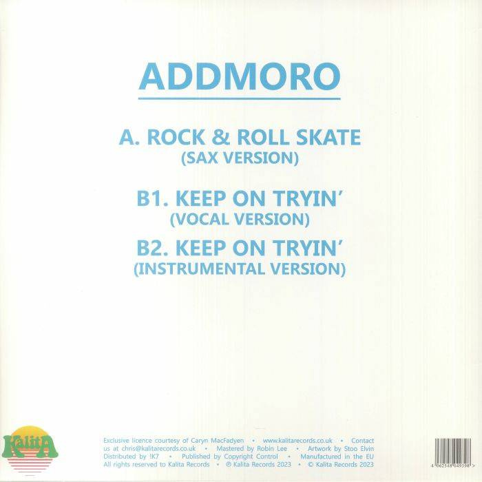 Originally released on the group’s eponymous label Addmoro Records, Kalita’s 12” reissue single features both the vocal and instrumental versions of ‘Keep On Tryin’, plus the saxophone-featuring boogie monster ‘Rock & Roll Skate (Sax Version)’, arguably one of the heaviest boogie recordings of the genre.