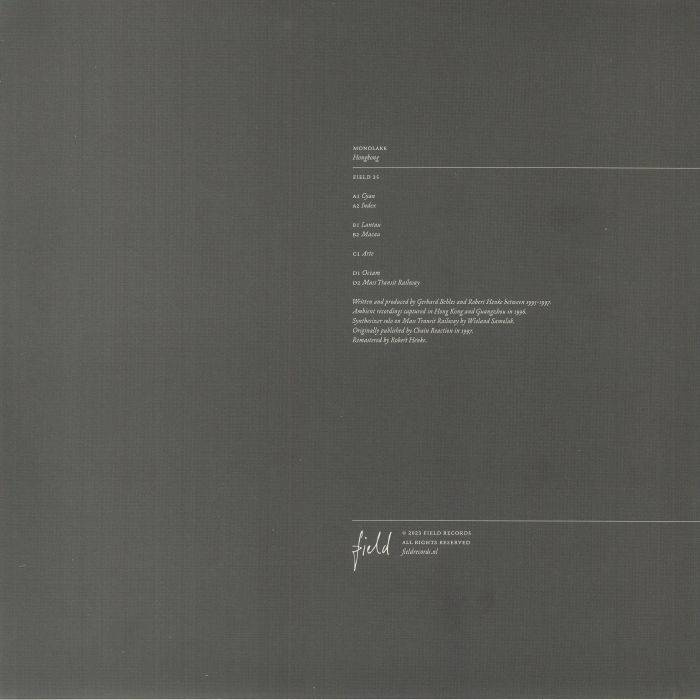 Field Records proudly presents the first complete vinyl edition of Monolake’s seminal excursion into experimental dub techno, Hongkong. Originally released on the now-classic Chain Reaction label in 1997, this collection of early singles by Robert Henke and Gerhard Behles has gone on to become a vital listening experience in its own right - a genre classic alongside the other groundbreaking works from the likes of Porter Ricks and Vladislav Delay.