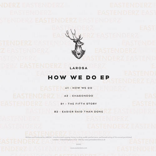 American producer LaRosa makes his first appearance on the esteemed Eastenderz imprint, bringing with him a quartet of killer, club-ready cuts. He sets his stall out with 'How Do You We Do', a chunky, tech-tinged roller piled high with deep, dubby sub-bass, bleeping melodies and intergalactic pads (plus a wonderful, saucer-eyed breakdown), before reaching for gently chiming melodies, bustling beats, smoother bass and trippy noises on 'Chagondoo'. 'The Fifth Story' is a little deeper and more subdued - though the sub-bass is even weightier and the melodies more bleeping - while 'Easier Said Than Done' is a rock-solid tech-house box jam of the sort that Eastenderz has always done so well. Keep an ear out for some very subtle disco vocal samples and acidic squelches.