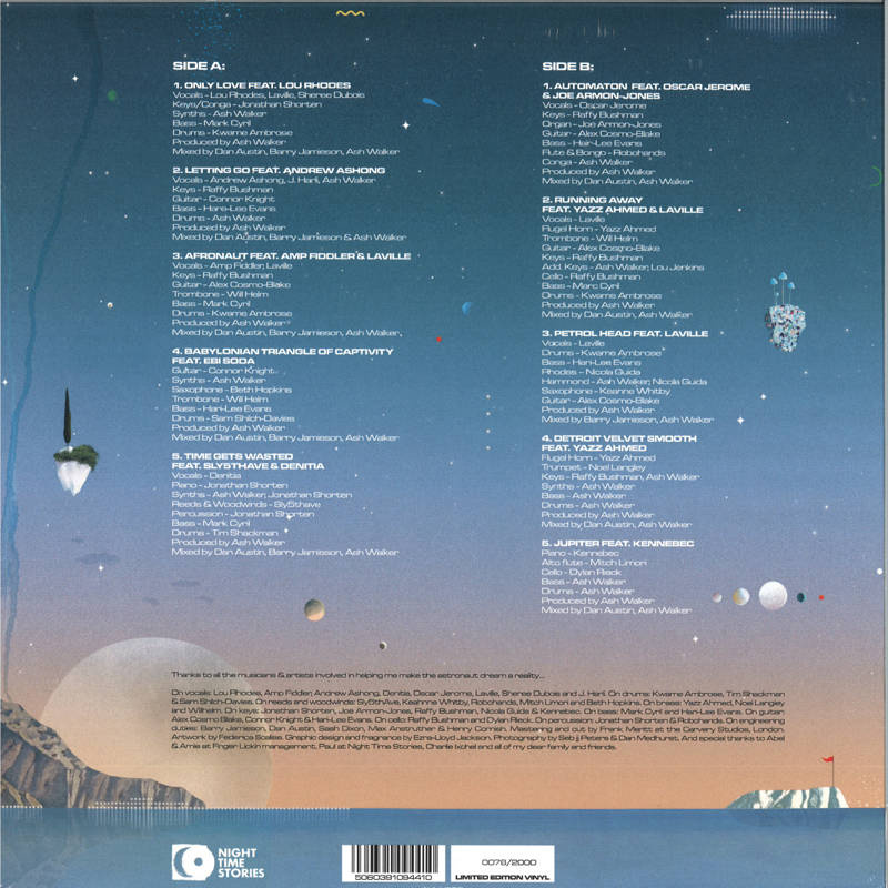 Four years on from his explorative third full-length ‘Aquamarine,’ Londoner Ash Walker returns with an equally ambitious follow-up, set for release via Night Time Stories on 30th June. Alongside a plethora of award-winning collaborators and combining a dizzy- ing array of sounds, ‘Astronaut’ hears Walker push his astral shower of rhythm and vibes to new heights. If 'Aquamarine’ was the take-off of his audial spaceship, ‘Astronaut’ is the cosmic voyage reaching terminal velocity; a rocket-powered masterclass spanning jazz, blues, soul, funk, and reggae.