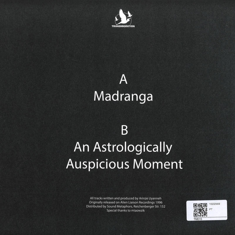 Extremely rare UK techno - raw, beautiful and haunting all in equal measure. Originally pressed in 1996 on a run of just 500 copies, this was the only record to be released on Alien Liaison Recordings. With no production credits on the original label, the record remained mysterious for many years. Fortunately in recent years the producer was identified to be South London resident Arinze Uyanneh. Now officially licensed, restored and remastered for modern use.