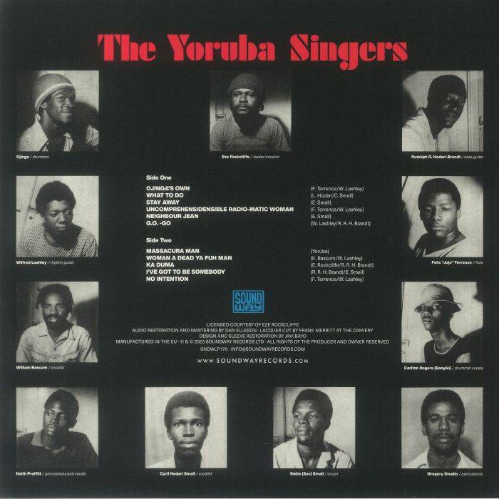 Integral to the Yoruba Singers’ sound are echoes of Obeah traditions which are very closely related to the Santería religion of Cuba and the Orisha and Shango traditions of Trinidad and Tobago. Calypso and steel- band culture from nearby Trinidad and Tobago was to some extent part of the musical DNA of the group, but they were naturally also influenced by the massive volume of rocksteady and roots-reggae coming from Jamaica.