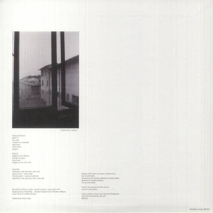 Legendary debut album by Junko Tange (mystery woman who showed up on the NWW list), originally issued by Osaka’s Vanity Records in 1979. Dadaesque recitations and sparse guitar, piano and electronic meanderings combine for a beguiling, hypnotic dreamworld. Officially licensed from the custodians of Yuzuru Agi's Vanity Records archives, this edition has been fully remastered from new transfers of the original analog tapes by Stephan Mathieu.