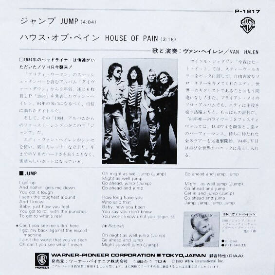 Picture/lyric/liner note insert and generic die-cut Warner-Pioneer company sleeve.Track A lyrics + "1984-1" on back insert.