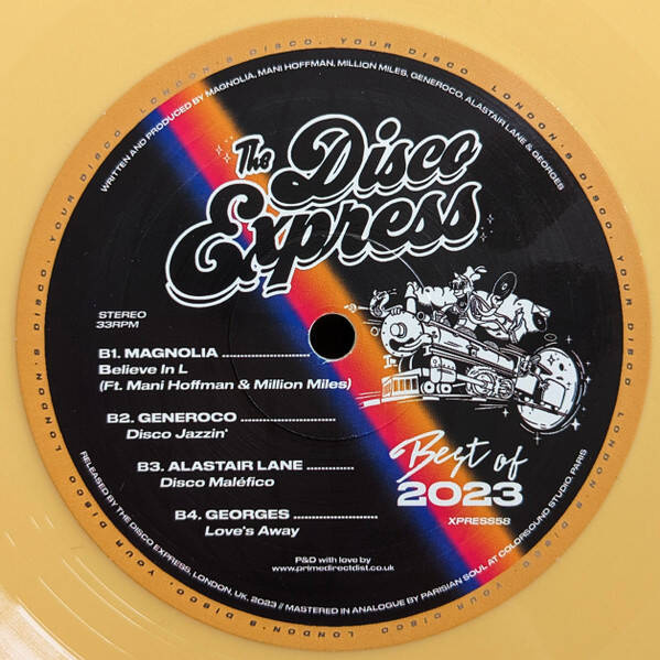 Flipping to the B-side you'll find rising star Magnolia and his buoyant soul bouncer 'Believe In L' featuring stunning vocals by Mani Hoffman (Starlight) and Million Miles. Generoco's 'Disco Jazzin' oozes in top quality, improvised jazz funk and Alastair Lane takes the tempo up a notch with his compelling and mysterious synth-tinged, disco house odyssey 'Disco Maléfico'. Elegantly ending the Best of 2023 vinyl is Parisian and AOC Records affiliate Georges with his truly sublime string laden disco groover 'Love's Away'.