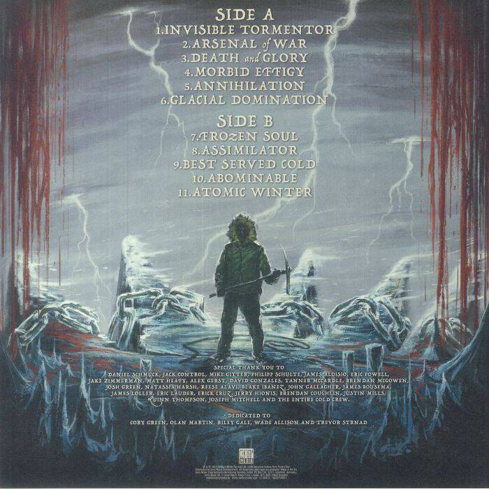 Glacial Domination, FROZEN SOUL's second album, sees the Dallas death metal quintet delve into even deeper abysses than their 2021 Century Media debut Crypt of Ice suggested. Tracks like 'Invisible Enemy' (featuring members of Power Trip and Creeping Death), 'Abominable' or the album's title track are an avalanche of riffs and unforgettable hooks that are reminiscent of ice-cold death metal classics and make FROZEN SOUL a top predator of modern extreme metal. Co-produced by Matthew K. Heafy (Trivium), Glacial Domination marks a shift toward brutal accessibility without unfreezing FROZEN SOUL's trademark darkness and cruelty. With the album's 2-song cycle, 'Frozen Soul' / 'Assimilator', inspired by John Carpenter's Antarctic sci-fi/horror classic 'The Thing from Another World', frontman Chad Green and his cold crew refine the distinctive The sound and vision of the band continues. Eternal winter is here. The ice age of FROZEN SOUL has begun. Glacial Domination is available as a standard CD Jewelcase, Ltd. black LP (in heavy 180g vinyl and with a special matt/gloss coating on the cover).