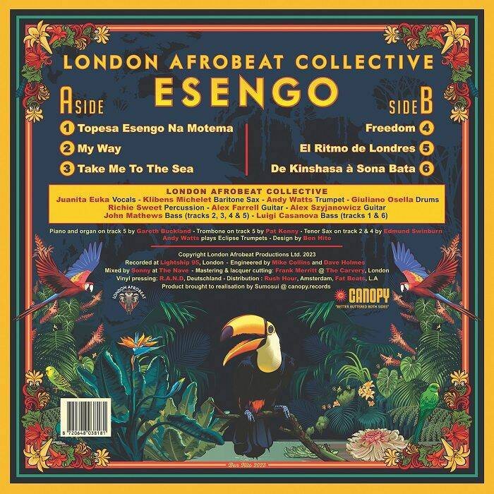 ‘Esengo’, produced by Sonny Johns (Tony Allen and Hugh Masekela, Ali Farka Toure), showcases London Afrobeat Collective’s love and respect for the traditions of afrobeat. With acclaimed Congolese singer Juanita Euka on vocals once more, ‘Esengo’ channels the spirit of Fela Kuti but with a willingness to create original music that crosses genres.
