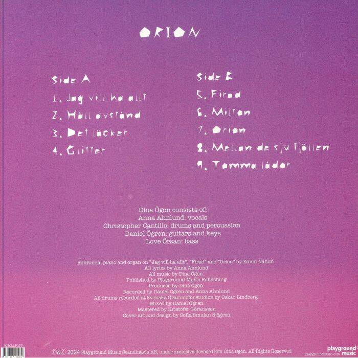 180g, black vinyl. Warm and harmonic, this four-piece Scandinavian soul act deliver nostalgia steeped tracks with a timeless feel. Described as the bastard lovechild of Fleetwood Mac, Khruangbin, obscure Motown singles, hip-hop duo Eric B & Rakim seasoned with a bit of Stevie Wonder, Selda Bagcan, Elis Regina and Ted Gärdestad, Dina Ögon borrow across decade, country, and genre, ultimately delivering cohesive and homely retro pop from a laidback Nordic horizon. With two critically acclaimed albums under their belt and backing from the likes of Tyler The Creator, many sold out tours and and an organic growth and word of mouth build up on a global level in just two years, they are gearing up to release their third album "Orion" in February 2024.