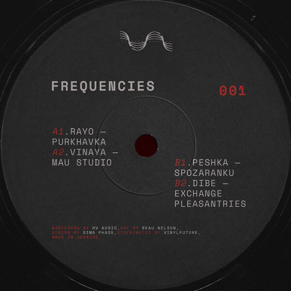 A new label fresh from Ukraine - Frequencies - gathers its forces for its first joint. For their debut V/A, four seasoned artists from around the country come together in the unity of sonic-national interest, pitting their skills behind the DAW side-by-side (nonetheless, these aren't mere bits to scratch your chin at). The deepchord-dubby 'Purkhavka' from Odesa native Rayo contrasts well with the snappier go-getter 'Mau Studio' from Vinaya, yielding an eclectic A-side from the jump. On the flip, the youngest of the bunch, Peshka, lays down 'Spozaranku', the acid-jammiest and most haunting track here, while ole' friend-of-the-label Dibe foments grittier and 2-steppier excitations with 'Exchange Pleasantries', which, despite its title, does just as well to transcend mere polite sonic formalisms.