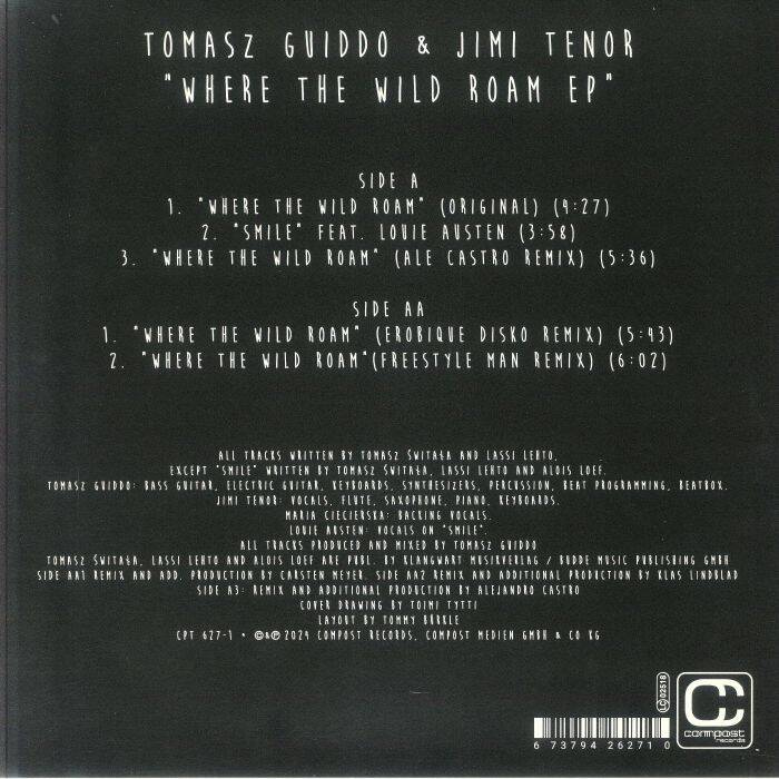 This collaboration between Jimi Tenor and Tomasz Guiddo shines brightly and features a heartwarming hook that really lodges deep in the brain as 'Where The Wild Roam' pairs ancient-sounding lo-fi drums with a Western-style whistle and plenty of earthy, twanging guitars. Next up the legendary Louie Austen lends his vocals to 'Smile' for a steamy and tropical house sound lit up with Latin melodies over a shuffling, samba-adjacent rhythm. Erobique, known for chart hits in Europe and his work with DJ Koze, contributes his magic, while Freestyle Man, aka Sasse from Moodmusic, delivers his trademark deep house style. Ale Castro adds a DJ-friendly house version, enhancing the EP's overall allure.