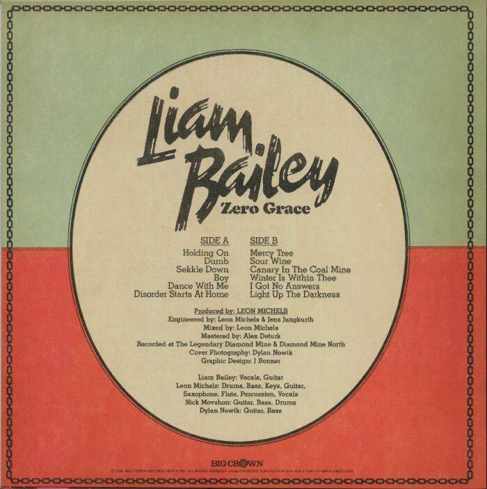 Big Crown Records is proud to present Zero Grace, Liam Bailey's sophomore album on the label. Following the success of 2020's Ekundayo album, the tried and true chemistry of Bailey and producer Leon Michels (El Michels Affair) is on full display again as they take the sound they established and push it further. On Zero Grace they lean more into the bleeding heart singer-songwriter side of Liam. The result, much like Bailey himself, is impulsively honest without reserve. Born and raised in Nottingham, England, the son of an English mother and 2nd generation Jamaican English father, Liam will admit his early childhood was fairly chaotic and filled with "all the cliche racism that happens when people started mixing up in the '80s in England." Liam got his early influences from his mom's record collection. Bob Marley and Dillinger, Stevie Wonder and The Supremes, The Beatles and Jimi Hendrix would eventually shape the singer/songwriter we know today. Fast-forward to 2005, Liam is in London performing at every open mic and acoustic night he could, hustling with hopes of landing a record deal. It was through this time that Liam first teamed up with Michels, musician/producer luminary, and the co-founder of Brooklyn's own Big Crown Records. Liam flew out to New York and those first sessions together produced the now classic tunes "When Will They Learn" and "I'm Gonna Miss You" which still gets spins at Reggae spots around the globe and were co-signed by heavy hitters like David Rodigan & Don Letts. That first trip to NYC brought a lot of industry attention to Liam, including being noticed by a just-famous Amy Winehouse who heard one of Liam's apartment-made, lo- recordings, and liked what she heard. Regardless of the audio quality, Liam's particular sound shone through - all guitar, warm-rough and genuine soul. Eventually Liam signed to Polydor and wound up bumping against the typical major label industry obstacles. They already had an idea of the Liam they wanted to make, promote, and push With the typical large advance enticement, Liam did his best to trust that path. "Maybe I can make it work,' that's what you're thinking," Liam remembers, "but, you quickly find out that you can't." Zero Grace is full of freedom and love, in fact, working with Leon Michels and Big Crown Records has encouraged Liam to be himself. On album opener "Holding On '' Bailey speaks to his observations & fears when looking out at the world in front of him and also to the dedication it has taken to get on the other side of his personal trials & tribulations. "Dance With Me" is an instantly infectious two-stepper that nods to those incredible soul records that were coming out of Jamaica during the early Reggae days. Bailey steps into the dance with hopes of finding a new love and pulls us all out on the dance oor with him. "Disorder Starts At Home" is another close to the chest tune that addresses the difficulties he struggles with from his early chaotic childhood and his progress in getting past them. "Mercy Tree" is a powerhouse of Reggae Rebel Music. Bailey addresses the racial tensions that plague humanity and encourages everyone to step up and do their part to help foster equality. What starts out as a declaration of injustice turns into a call for action and an inspiration for hope.